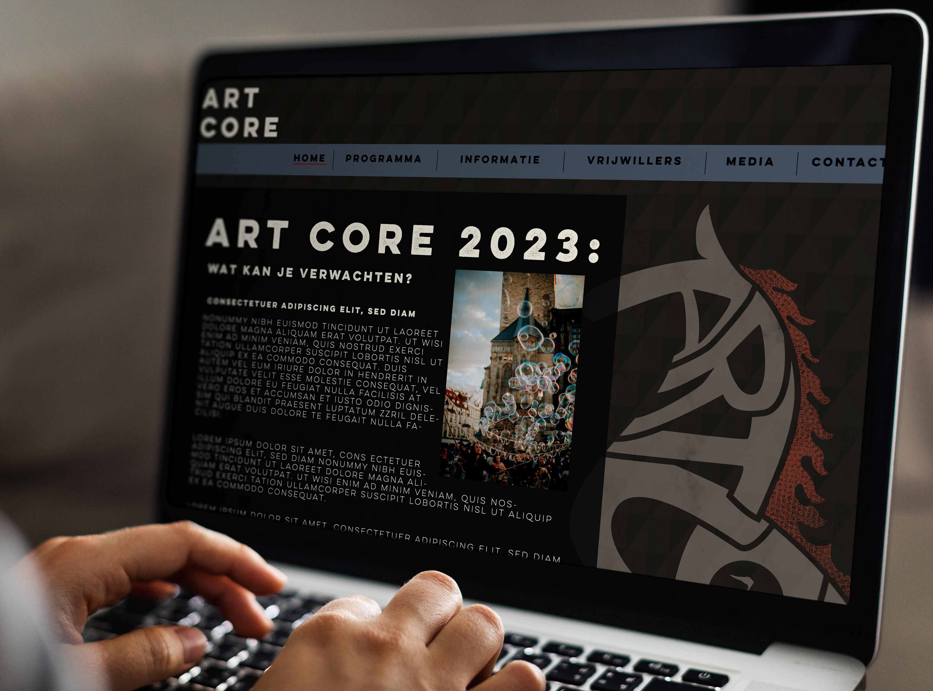 Dit is het nieuwe letterlogo en hoofdbeeld voor het fictieve art festival Art Core dat zou plaatsen vinden in het hart van Almere.