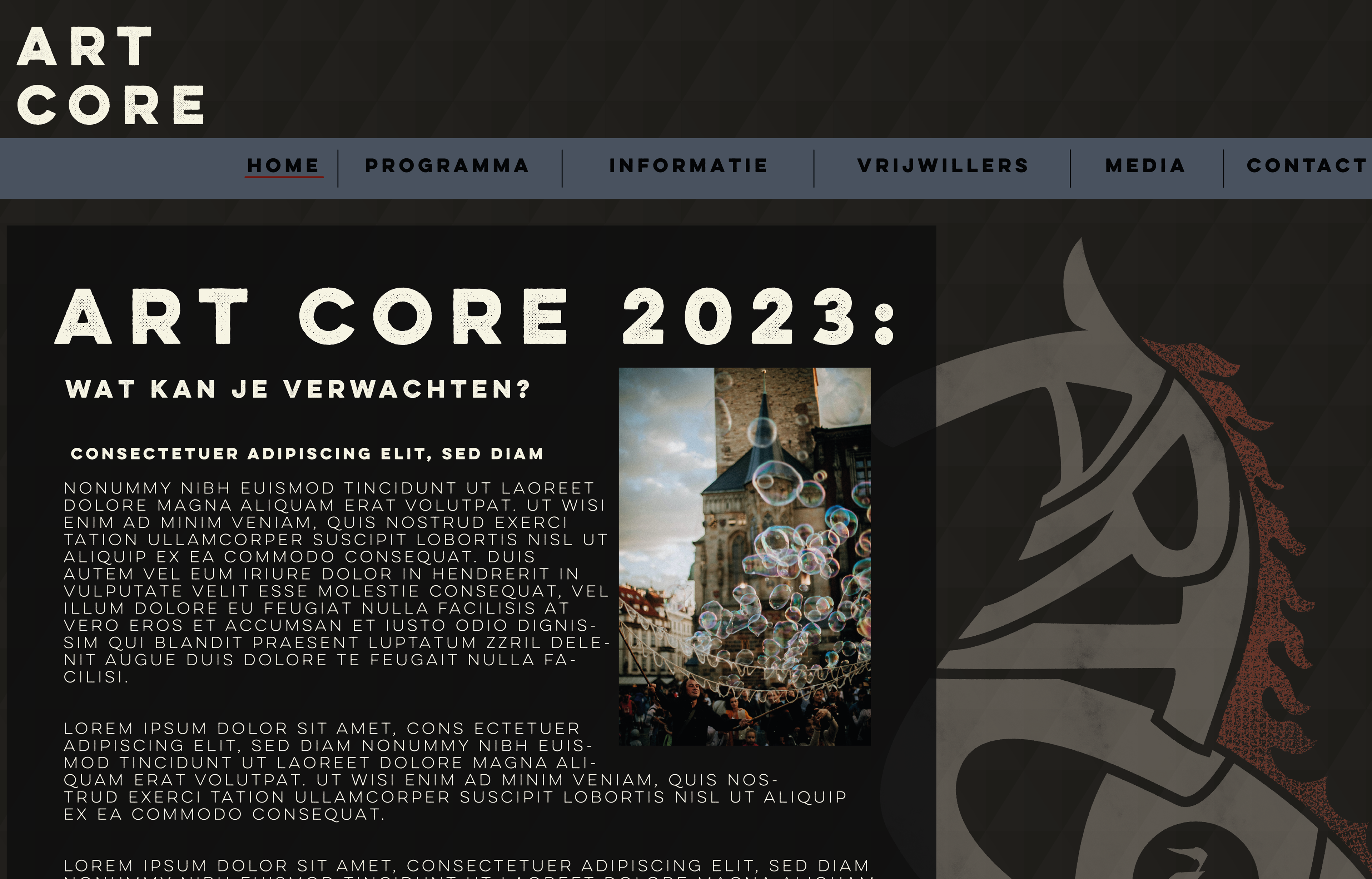 This is the new letter logo and main image for the fictional, art festival Art Core that would take place in the city centre of Almere.