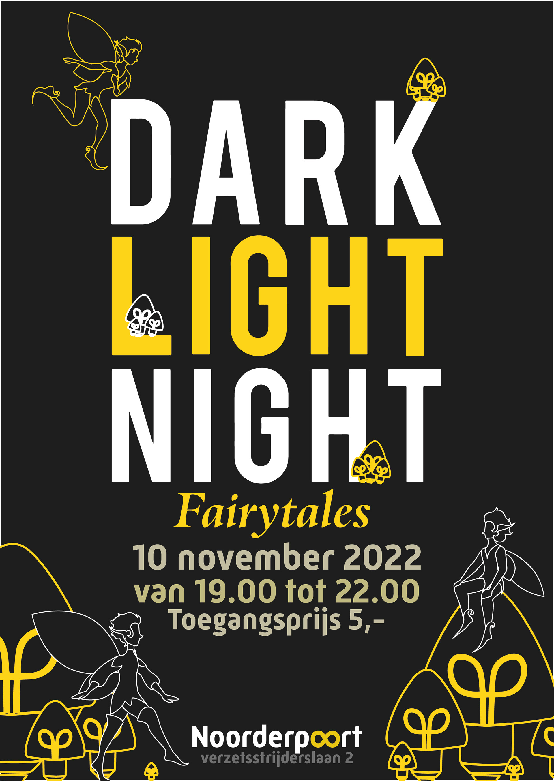 This is the poster and save-the-date that I made for the Nooderpoort Kunst en Multimedia Dark Light Night.