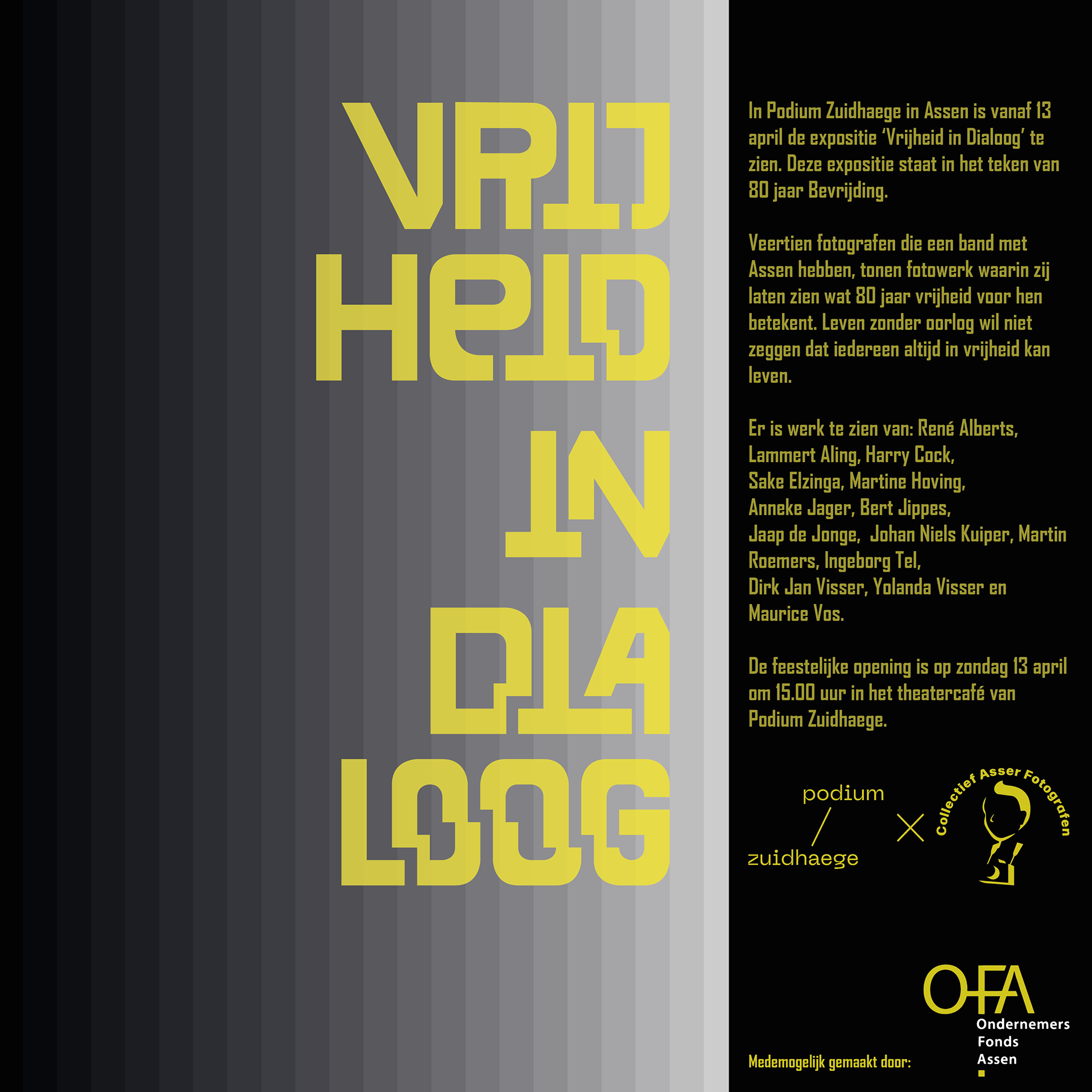 Door het Collectief Asser Fotografen ben ik benaderd om voor hun expositie 'Vrijheid in dialoog' gevraagd om de vormgeving te doen voor het evenement.